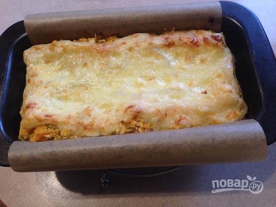 10. Запекаем лазанью примерно 30-35 минут, до легкой румяной корочки сыра. Если вам не нравится сырная корочка, можете доставать лазанью уже через 20-25 минут.