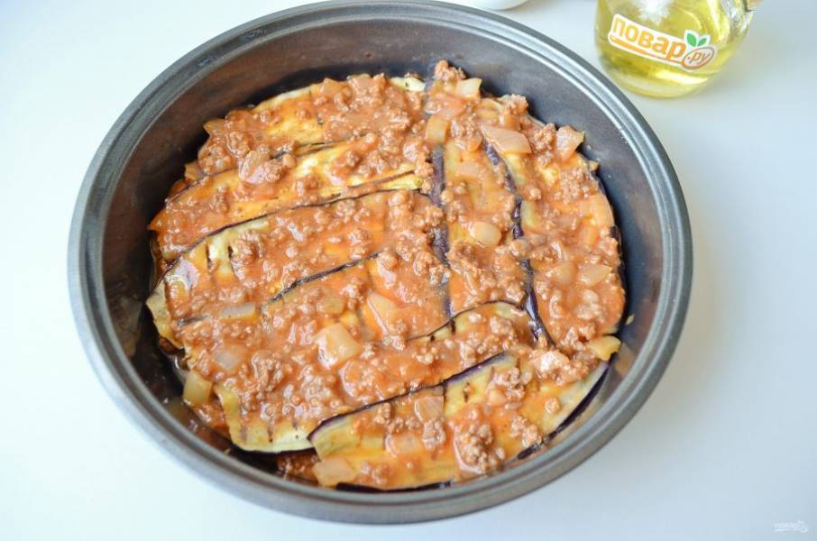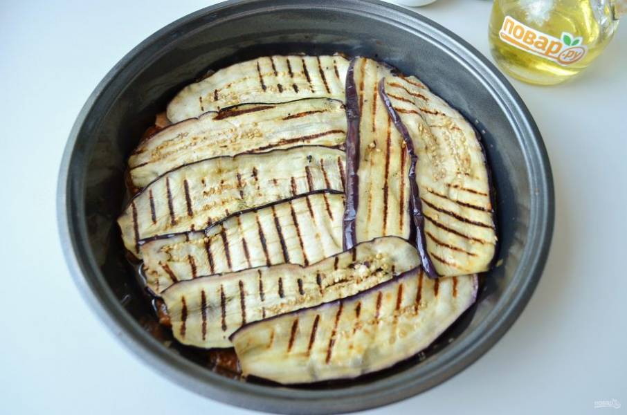 10. Далее уложите слой баклажанов "внахлест".