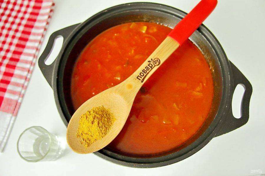 За 2-3 минуты до готовности добавьте карри и уксус.