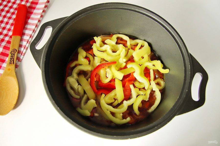 Добавьте нарезанные кубиками помидоры. Я предварительно шкурку снимаю, но вы можете ее оставить по желанию. Продолжаем тушить еще 15 минут.
