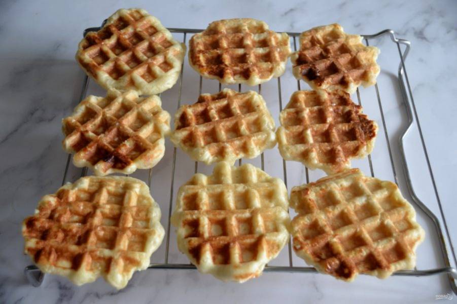 Выпекайте вафли с двух сторон до готовности. Остудите на решетке.