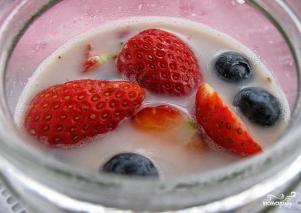 2. Вымойте и обсушите ягоды или фрукты. Прекрасно подойдут яблоки, бананы, клубника или малина, черника и даже цитрусовые. При необходимости измельчите их и добавьте в банку.