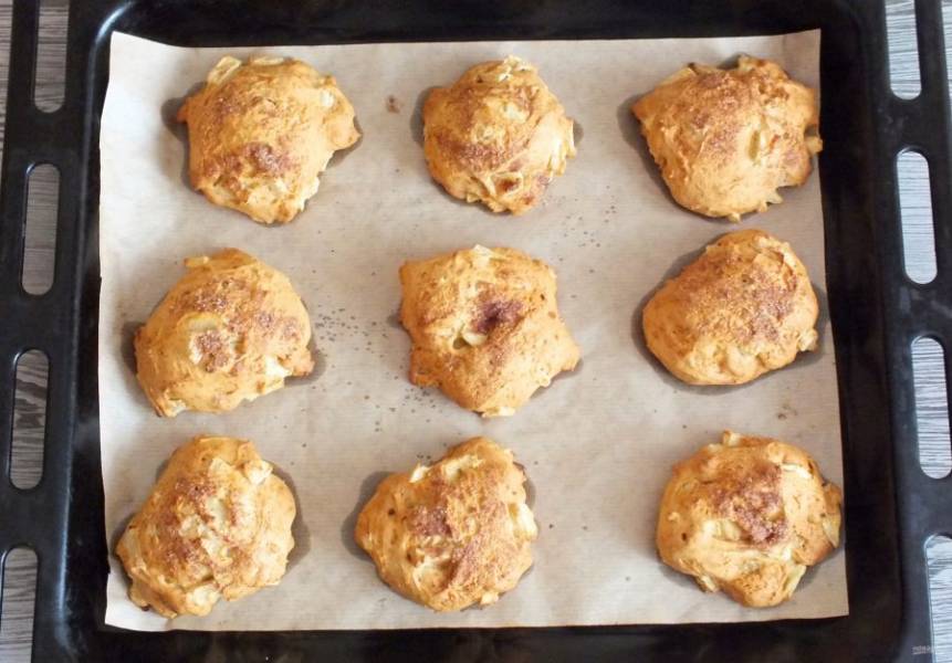 По истечении времени достаньте противень из духовки. Готовые булочки будут золотистого цвета и легко сниматься с листа.
