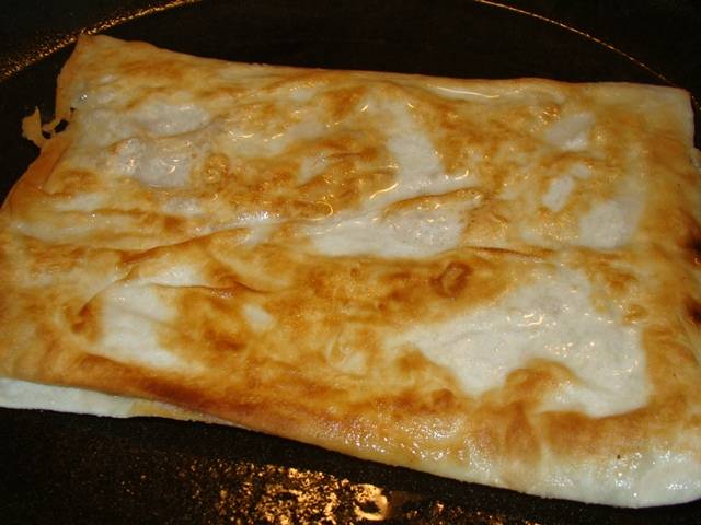 3. Аккуратно заверните так, чтобы начинка не выпала в процессе жарки. Кстати, уже на этом этапе можно разогревать сковороду.