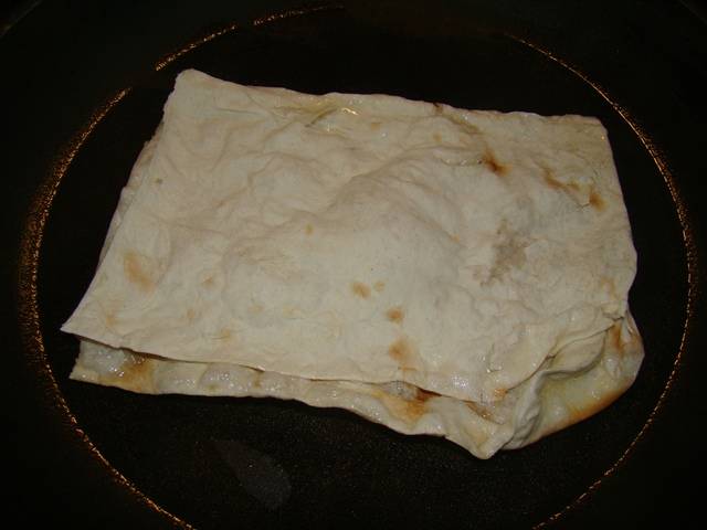 5. На разогретую сковороду налейте растительное масло. Его количество зависит от ваших вкусовых предпочтений. Выложите лаваш на сковороду.