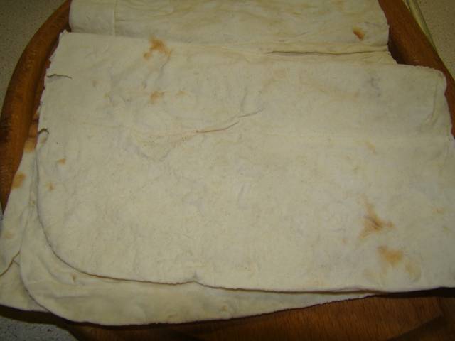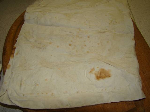 4. Плотно прижмите руками лаваш сверху. Если хотите, можете завернуть края в середину.