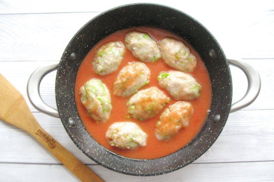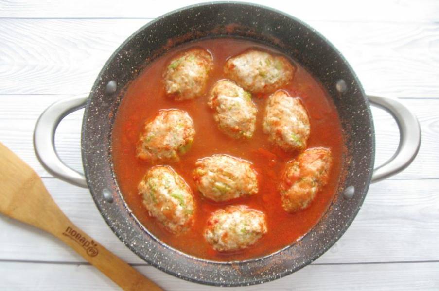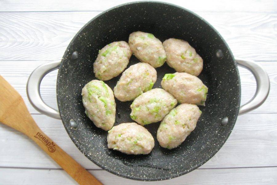 Сформируйте из фарша ленивые голубцы овальной формы. Выложите их в сотейник или в кастрюлю с толстым дном.