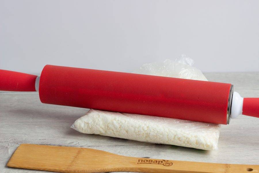 Достаньте подмороженный творог из холодильника и тщательно "помассажируйте" его с двух сторон скалкой. Он раскрошится и будет идеален для приготовления теста.