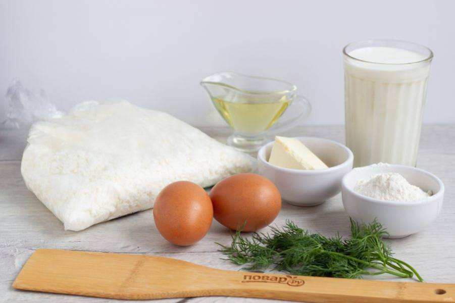 Подготовьте все необходимые ингредиенты. Творог за 1-1,5 часа до приготовления теста уберите в пакете в морозильную камеру. Нужно, чтобы он немного схватился от холода.