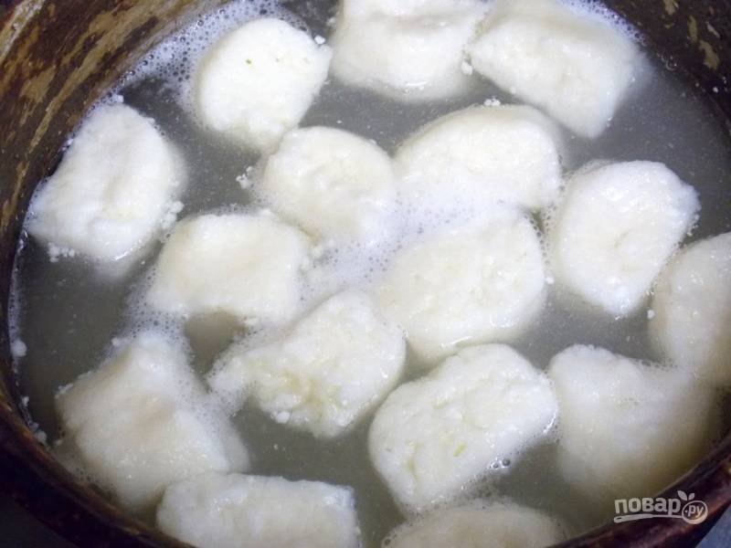 Посолите воду и доведите до кипения. Опустите вареники, доведите до кипения и варите около пяти минут. Вареники должны всплыть.