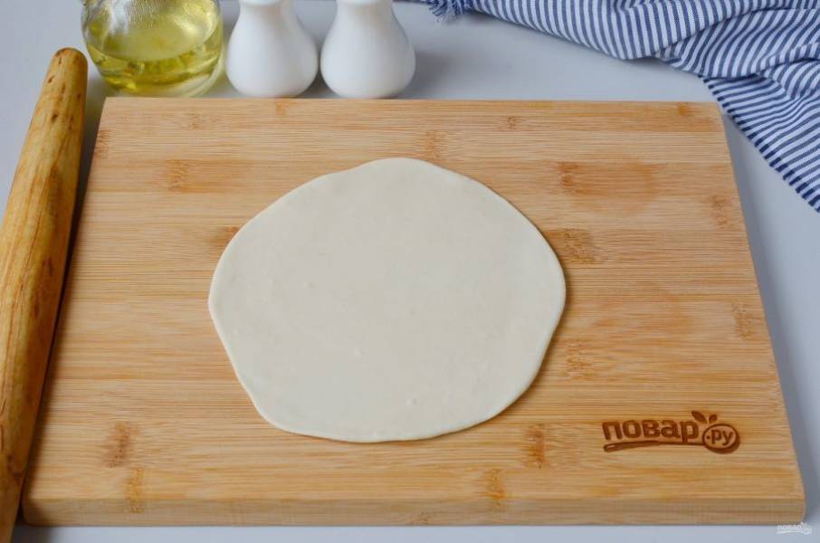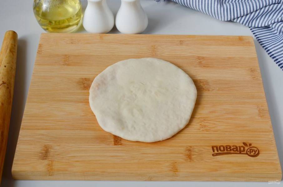 Раскатайте шарик теста в лепешку диаметром 13-15 см.