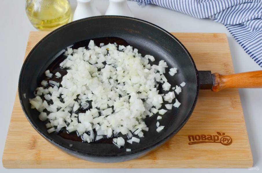 На растительном масле обжарьте нарезанный кубиками лук до мягкости.