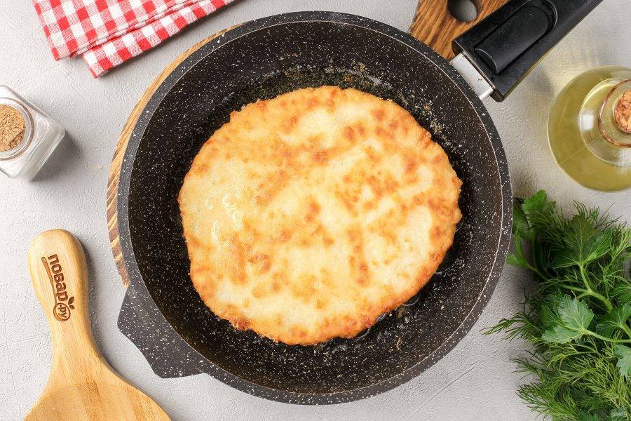 Обжарьте в раскалённой с маслом сковороде с двух сторон до золотистого цвета.