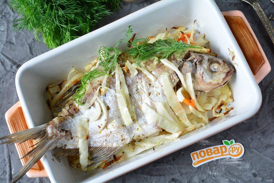 Приготовьте в духовке леща с капустой. Запечённая рыба получается вкусной и ароматной. Берите на заметку рецепт!
