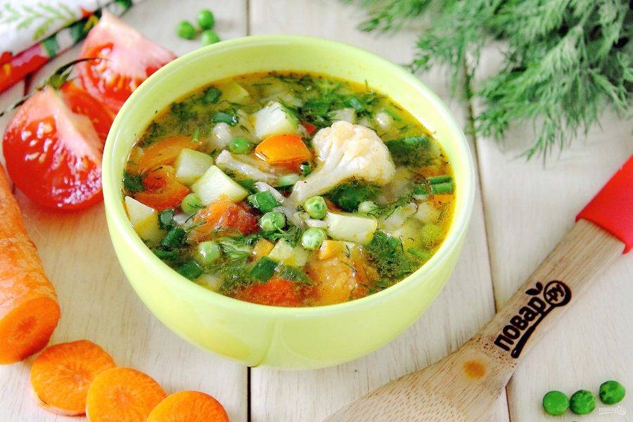 Готовому летнему овощному супу дайте настояться 10-15 минут и подавайте к столу.