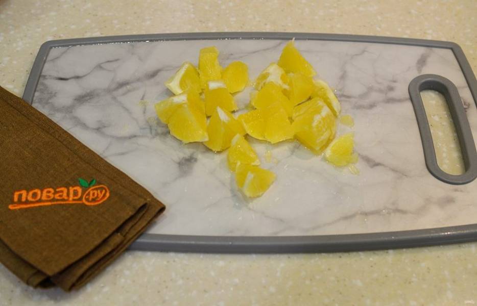 1. Лимон очистите от кожуры, косточек и перепонок. Нарежьте на кусочки.
