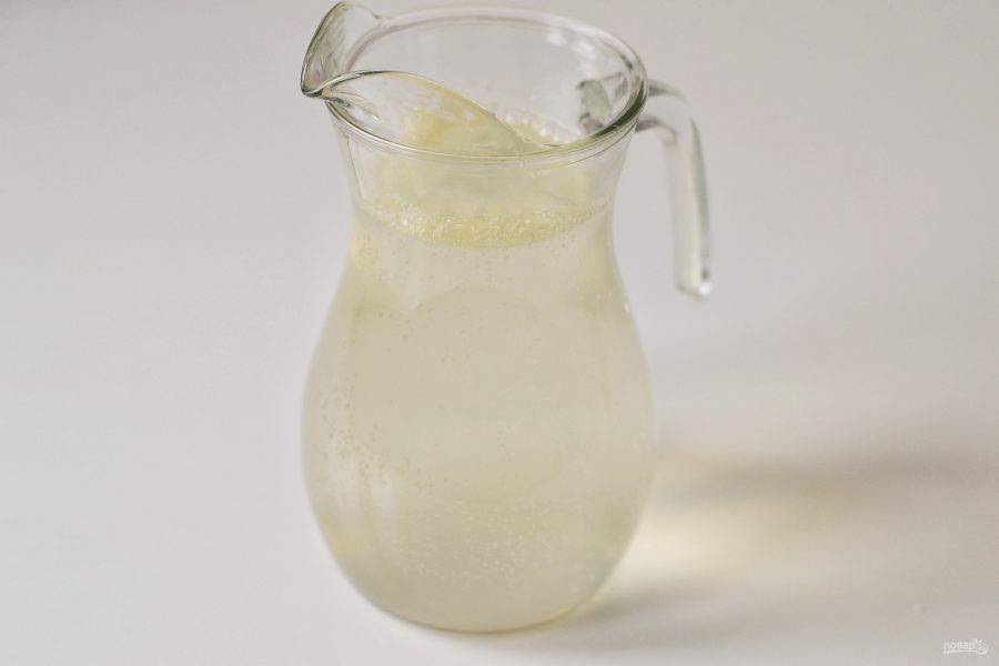 Готовый лимонад можно подавать со льдом и долькой лимона.