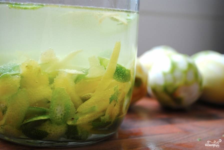 Залить цедру водкой, плотно закрыть и дать настояться неделю, встряхивая банку ежедневно.
