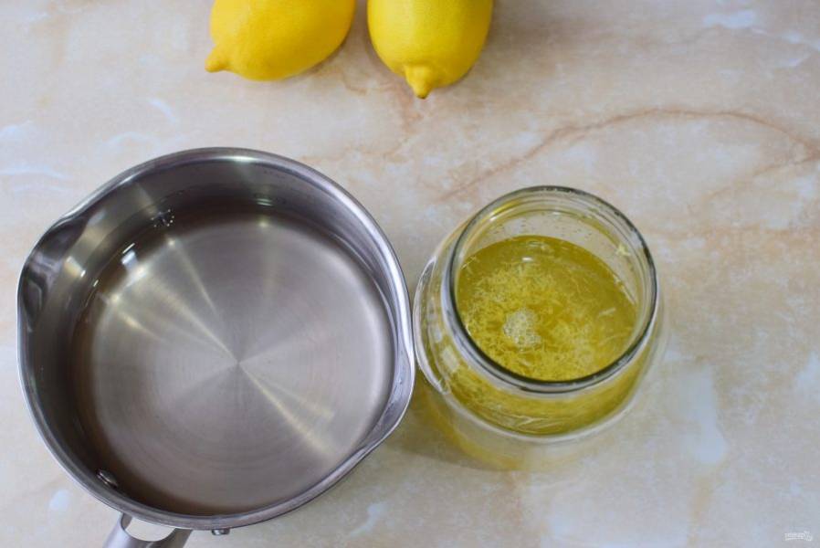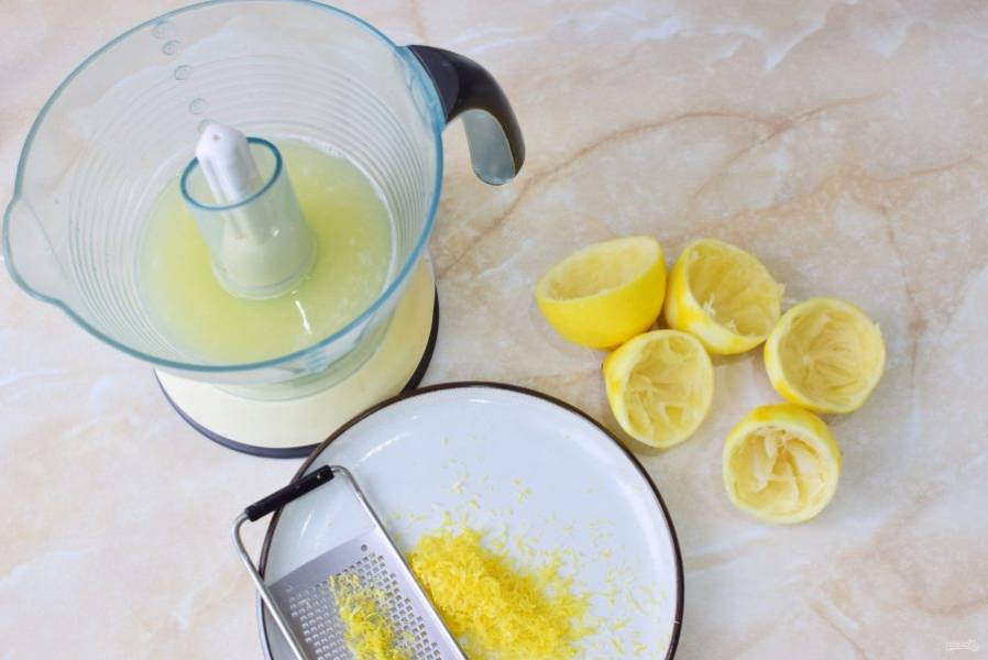 С лимонов снимите цедру и выжмите сок. Перелейте сок в отдельную тару и уберите в холодильник.