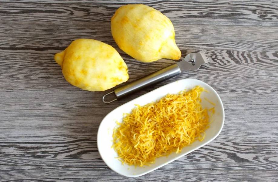 Лимоны тщательно вымойте, обдайте кипятком, вытрите насухо. Снимите цедру.