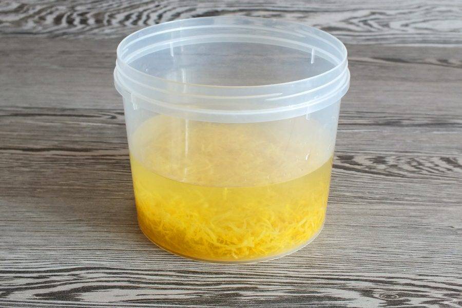 Полученную цедру переложите в стеклянную или пластиковую тару. Залейте водкой. Герметично закройте и уберите в темное место на 5 дней.