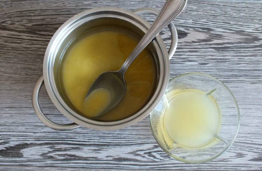 По истечении времени подготовьте сироп. Вскипятите 200 мл. воды. Охладите до 60 градусов.