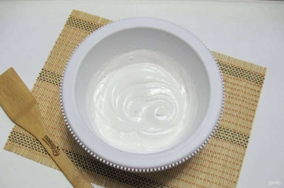 Яичные белки взбейте до твердых пиков.