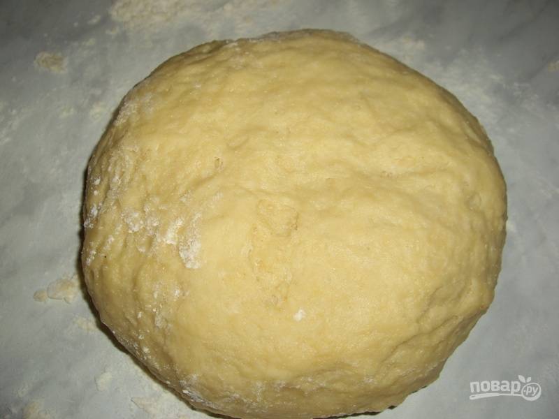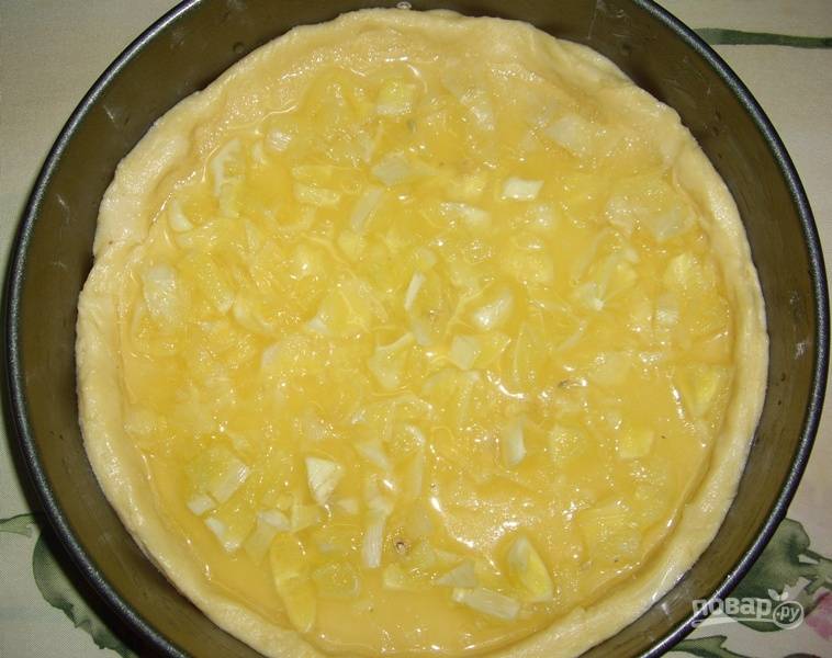 Потом тесто разделите на 2 части. Выложите одну по форме для выпечки, сделав бортики. Яйцо для смазки взбейте. Смажьте им бортики.