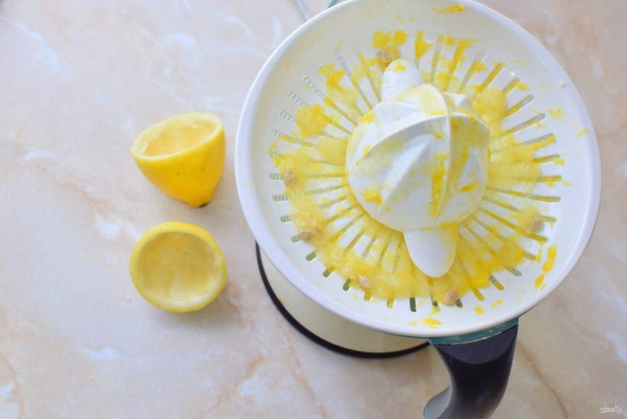 Для приготовления лимонного курда выжмите сок лимона. Должно быть 100 мл. Если не хватает, то долейте воду.