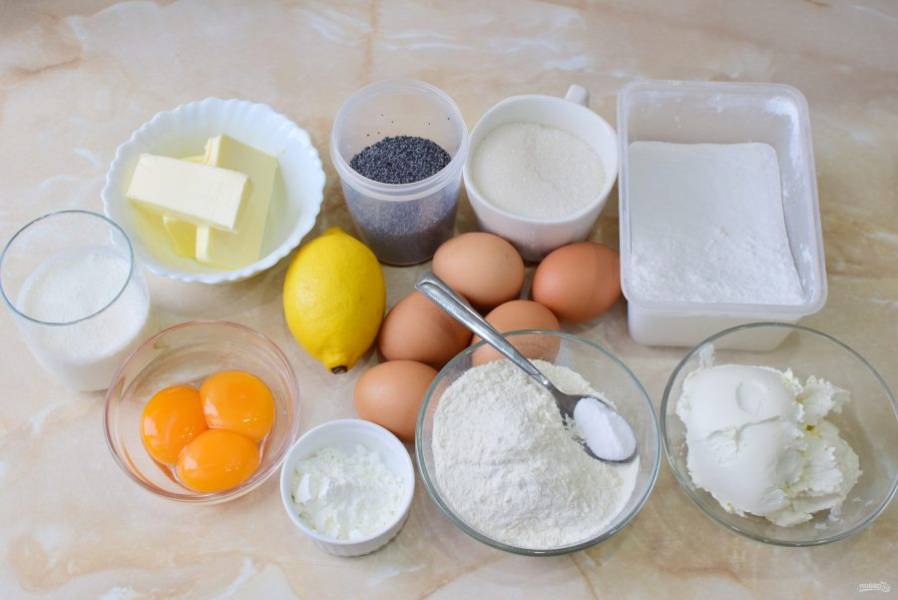 Для приготовления торта подготовьте все необходимые ингредиенты.