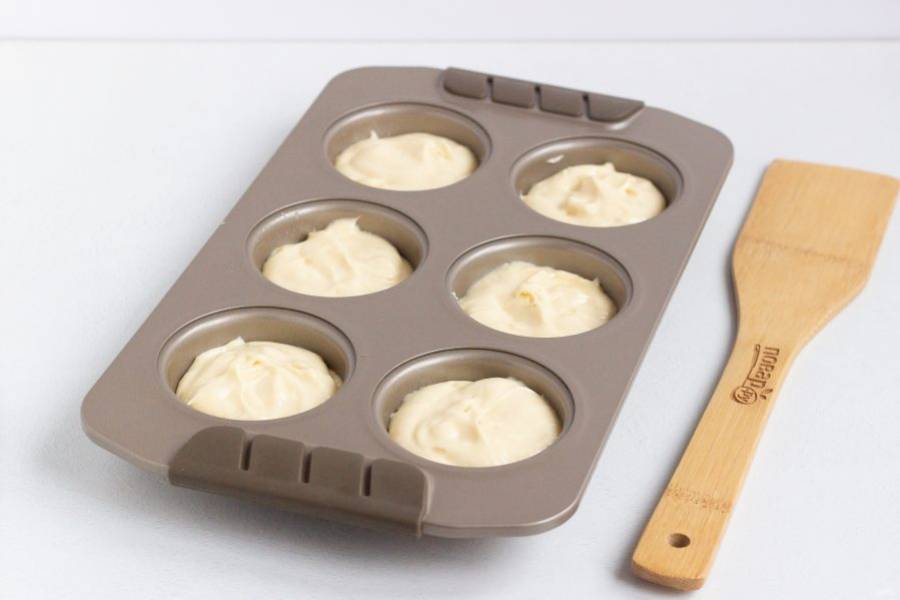 Формы смажьте растительным маслом, на 2/3 объема формы выложите тесто. У меня получилось 14 кексов. Поставьте запекаться при температуре 180 градусов на 25-30 минут.