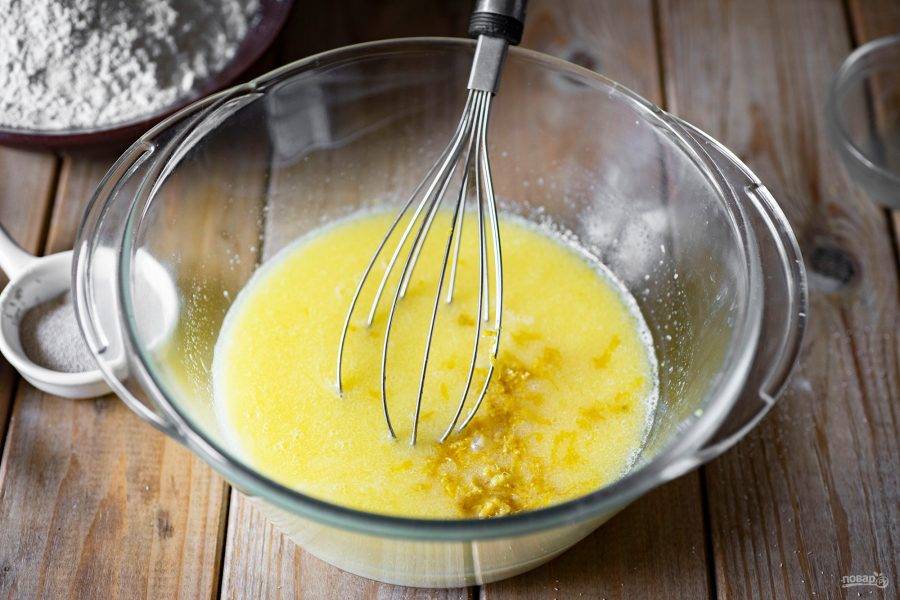 Залейте лимонный сок и добавьте цедру в миску к молочной смеси, перемешайте.