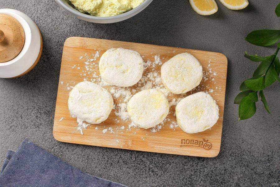 Разрежьте на кусочки, слегка прижмите каждый рукой и обваляйте с двух сторон в муке.