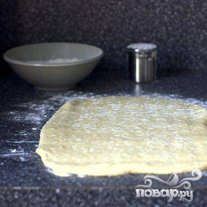 3. Раскатать тесто в прямоугольник размером 25Х37 на посыпанной мукой поверхности.