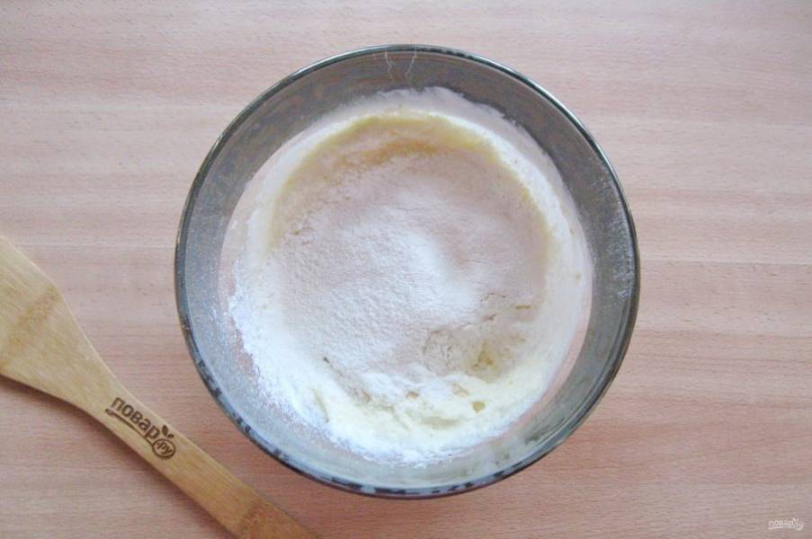Всыпьте просеянную муку.