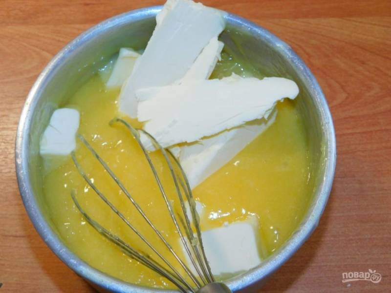 В горячую массу добавьте сливочное масло. Перемешайте, чтобы оно растаяло. Готовый курд остудите.