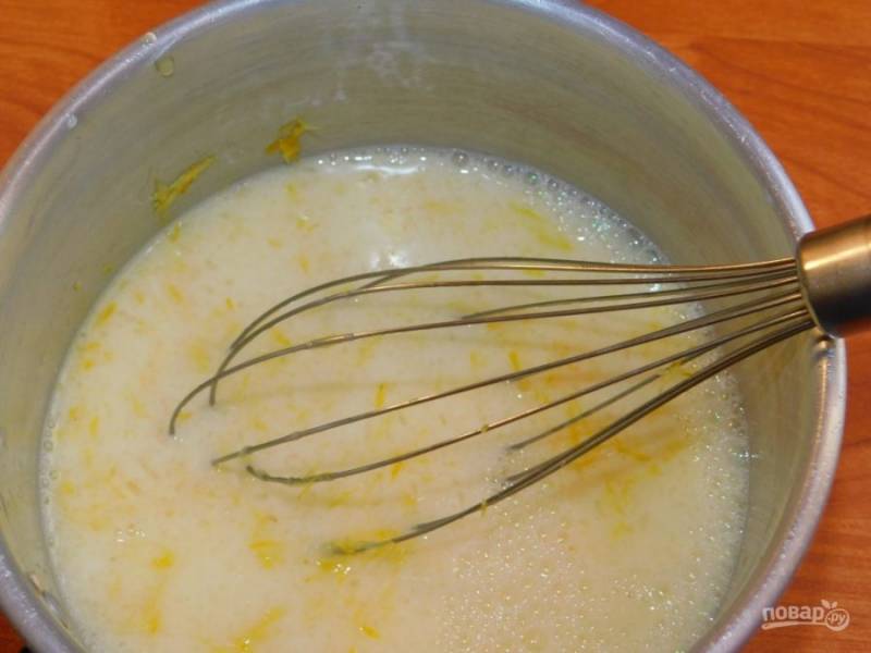 Смешайте сок с цедрой и крахмалом. Хорошо перемешайте, чтобы не было комочков.