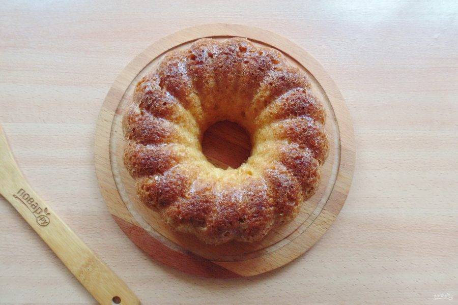Пеките пирог в духовке, разогретой до 175-180 градусов 40-45 минут. Готовность проверяйте деревянной палочкой, которая при накалывании пирога должна выходить сухой.