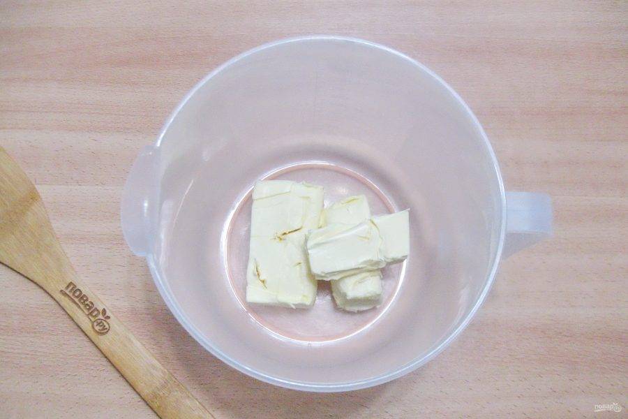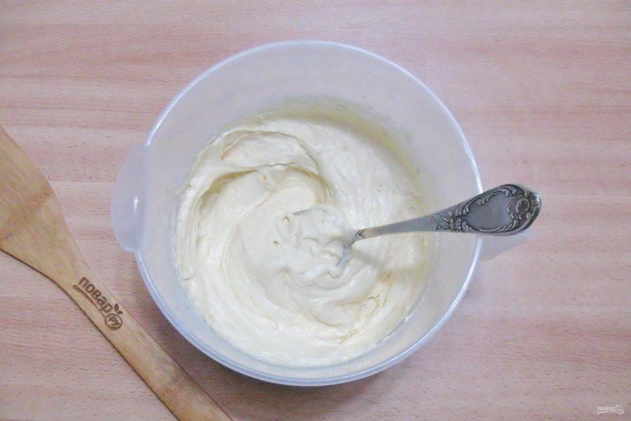 Добавьте сахар и взбейте миксером до консистенции крема.