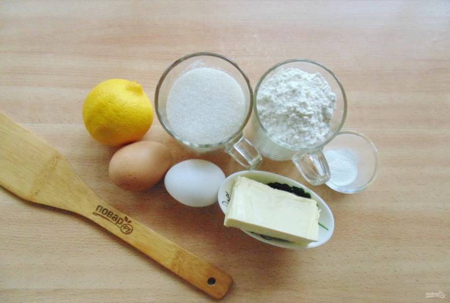 Подготовьте ингредиенты для приготовления лимонного пирога.