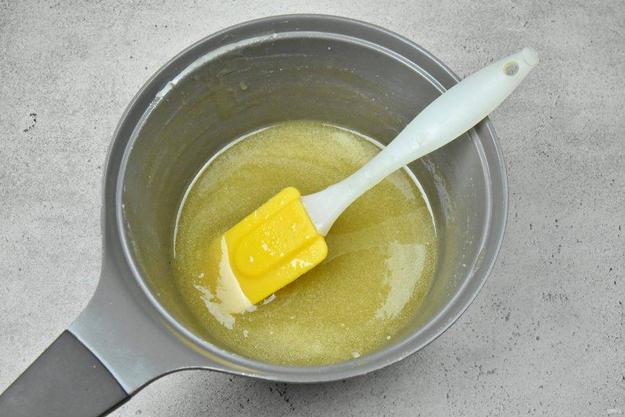 Температура готового сиропа 110 градусов. Если у вас нет термометра, ориентируйтесь на консистенцию. Готовый сироп лениво стекает с силиконовой лопатки и тянется карамельной ниточкой.