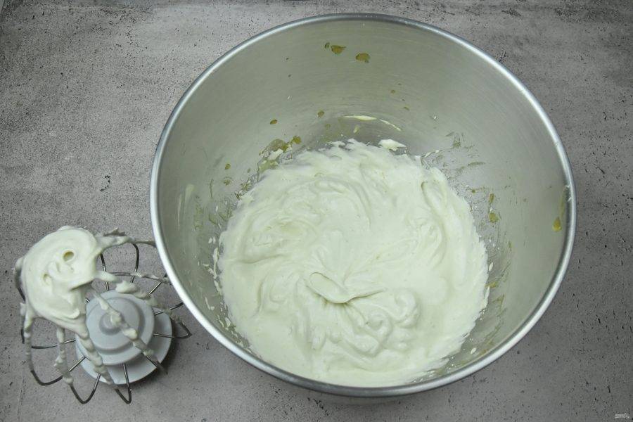 На небольшой скорости миксера смешайте ингредиенты между собой в течение пары минут.