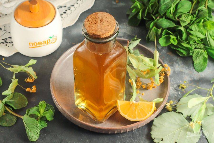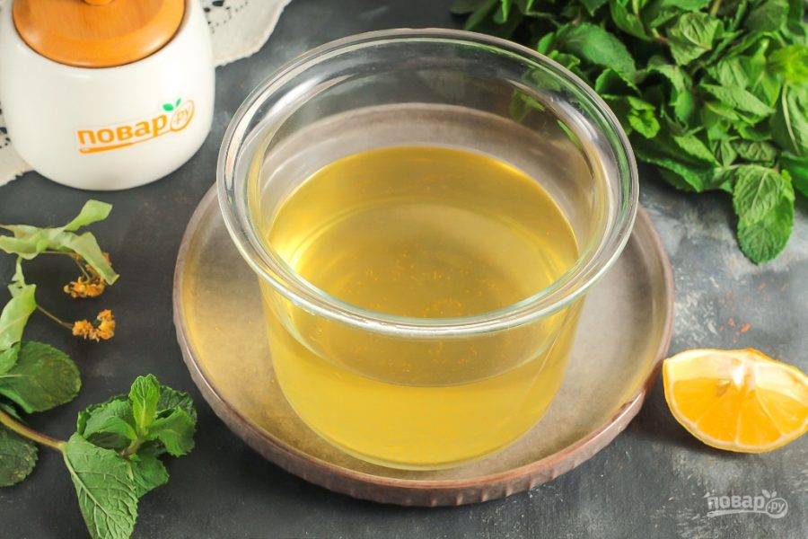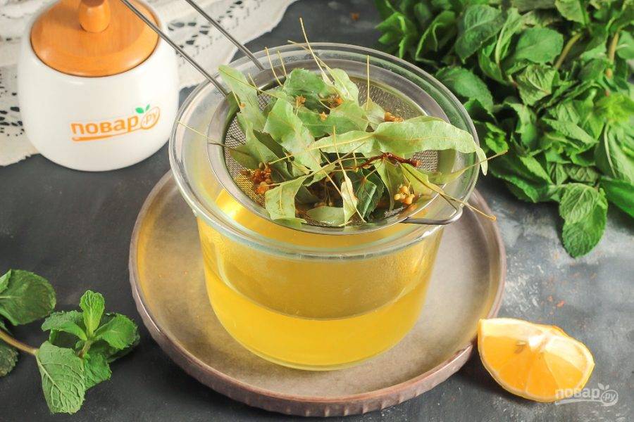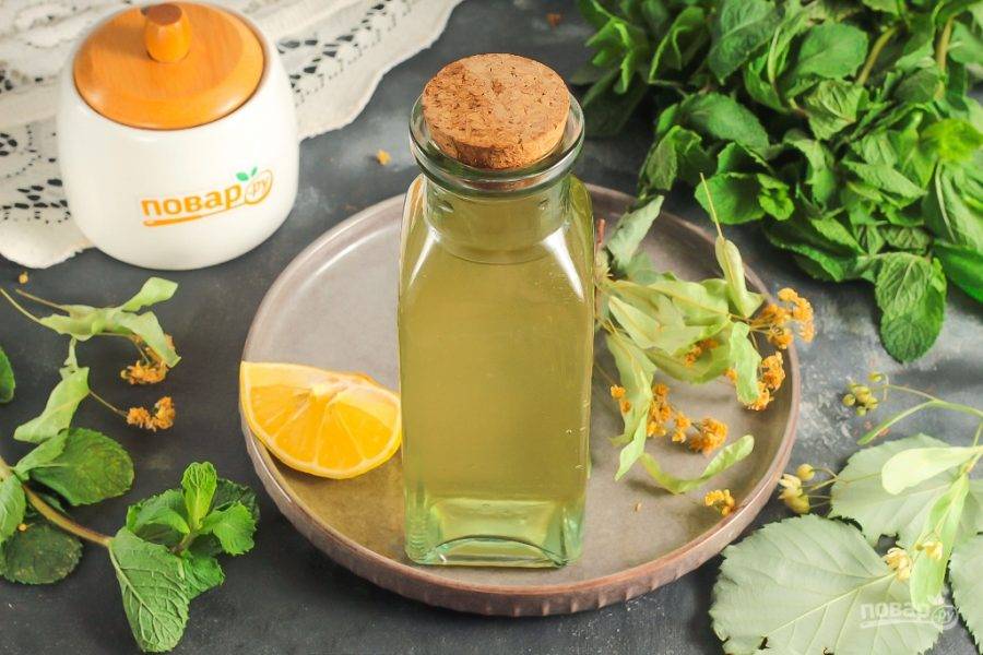 Остудите приготовленный липовый чай на холоде примерно 1 час. Влейте лимонный сок и перемешайте.