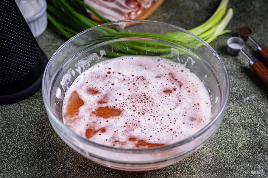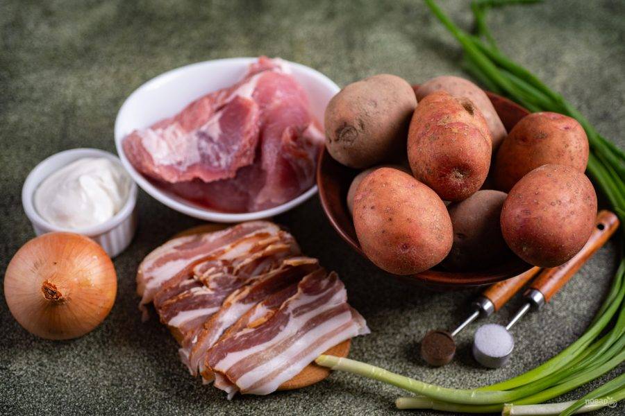 За это время вы успеете приготовить соус. Нарежьте небольшими кусочками бекон, нашинкуйте мелко вторую луковицу.