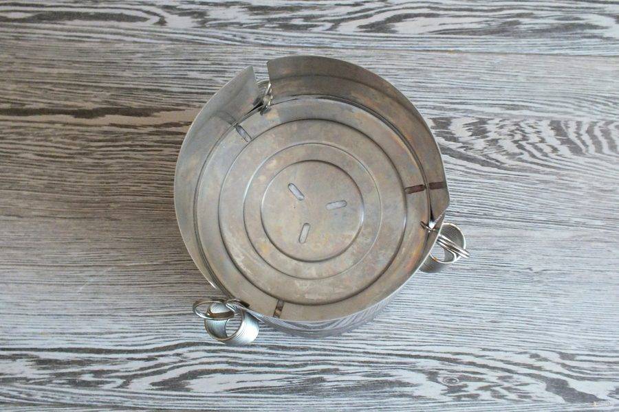 Выложите сверху прессовочную крышку. Ветчинницу поставьте в кастрюлю с водой. Уровень воды должен полностью покрывать ветчинницу. Поставьте на умеренный огонь. Варите при слабом кипении 2 часа.