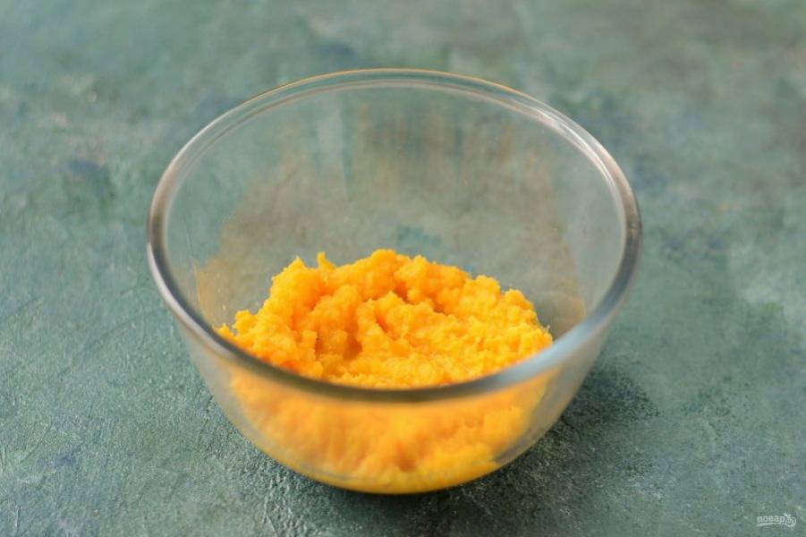 Тыкву очистите от кожуры, удалите семечки. Измельчите тыкву блендером.