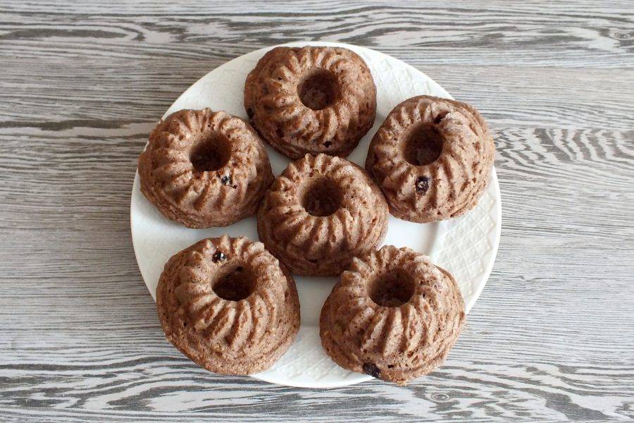Готовые кексы заметно увеличатся. Достаньте их из микроволновки и извлеките из формочек. Переложите на тарелку и дайте обсохнуть.