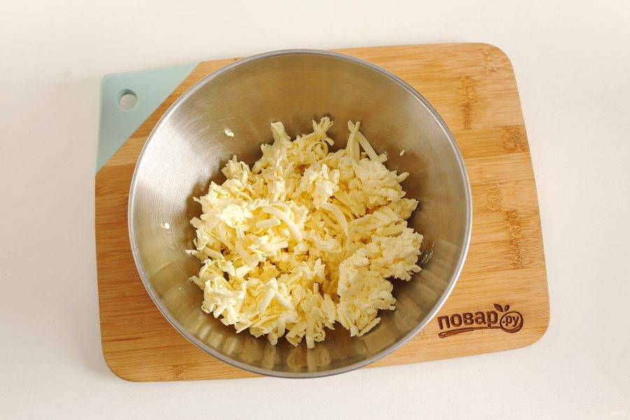 Масло натрите на крупной терке. Чтобы удобнее это было сделать, заранее подержите его в морозилке.