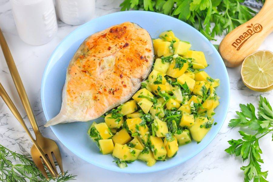 Лосось с чимичурри из манго