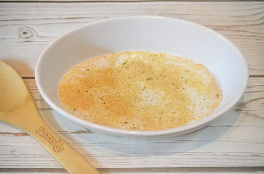 3. Жаропрочную форму смажьте маслом и посыпьте панировочными сухарями. Форму советую брать побольше. Я не рассчитала с толщиной стейков, и пришлось все переложить и взять более глубокую форму.